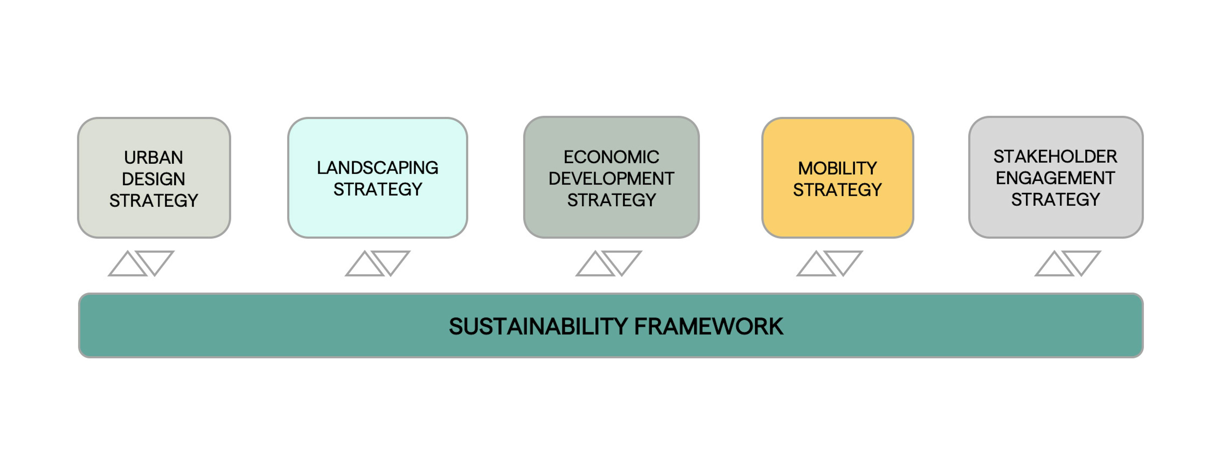 The framework provides an overarching structure and principle that aligns sustainability principles with the cross-cutting themes of the masterplan.